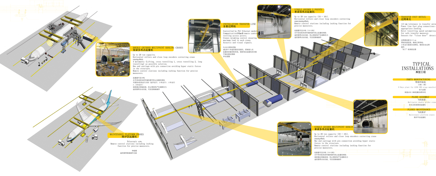 多年来,我们的起重机在飞机制造行业,以其提供的高效物料运输解决方案的设计和制造,赢得了良好的声誉。