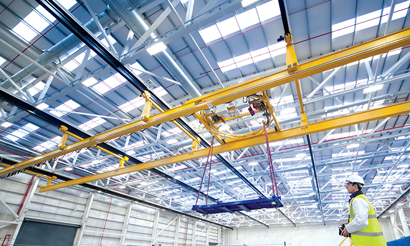 起重设备在全球飞机制造和维修方面发挥着巨大的作用。绝对的名副其实:起重机不仅用于部件制造流程,也用于车间内搬运飞机组件,乃至整个机身。作为覆盖整片区域的空中搬运系统,起重机衔接了各个装配环节。其设计越是针对具体工艺,生产成本降低得就越多。